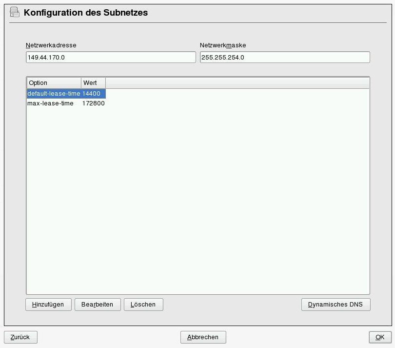 Abbildung 22-8 DHCP-Server: Konfigurieren von Subnetzen