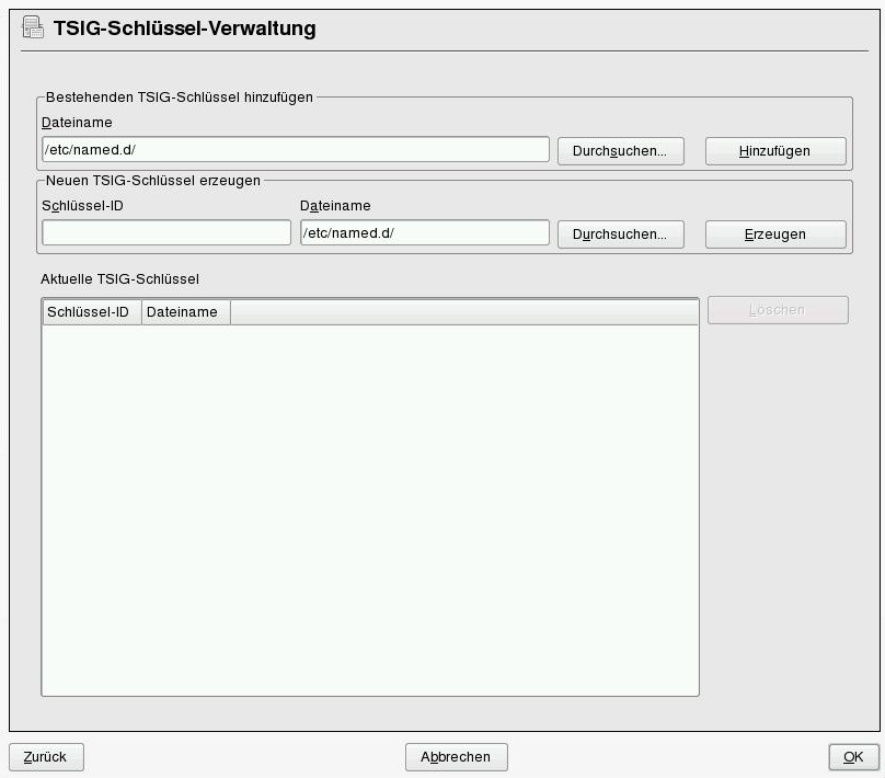 Wenn Sie im vorigen Dialogfeld die Konfiguration des dynamischen DNS vorgenommen haben, können Sie jetzt die Schlüsselverwaltung für einen sicheren Zonentransfer konfigurieren. Wenn Sie wählen, gelangen Sie zu einem weiteren Dialogfeld, in dem Sie die Schnittstelle für das dynamische DNS konfigurieren können (siehe Abbildung 22-10).