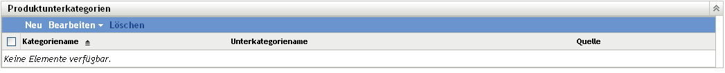 Daraufhin wird der Bereich "Produktunterkategorien" angezeigt, in der sämtliche vordefinierten Unterkategorien der angegebenen Kategorie sowie die Unterkategoriequelle ( oder ) aufgelistet sind.