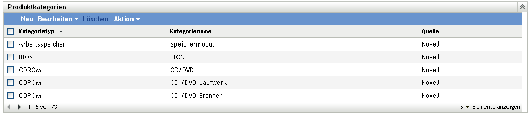 Kategorietyp: Die Produktkategorie, beispielsweise CPU oder CD-ROM. Diese Angaben sind vordefiniert.