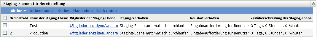 Am Besten geben Sie am Anfang der Namen von Staging-Ebenen "Staging-Ebene für Bereitstellung" oder ähnliches ein, um Ihre Staging-Ebenen in der alphabetisch sortierten Liste im ZENworks-Kontrollzentrum sofort zu finden.
