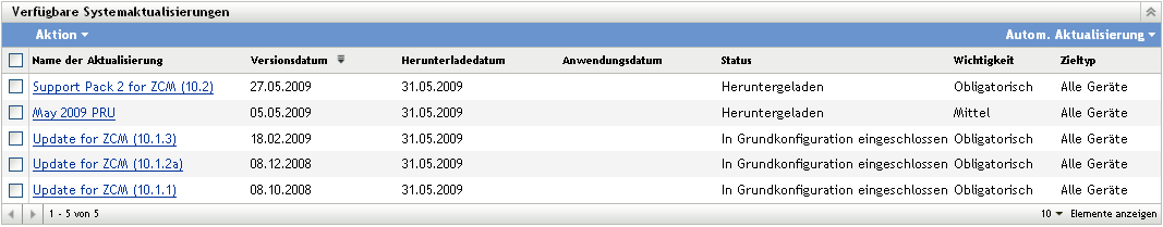 Überprüfen Sie die Kontrollleisten der Seite "Systemaktualisierungen" im ZENworks-Kontrollzentrum: