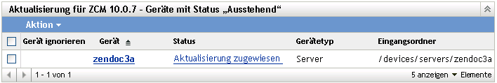 Ausstehende Geräte: Listet nur die Geräte auf, für welche die ausgewählte Aktualisierung aussteht.