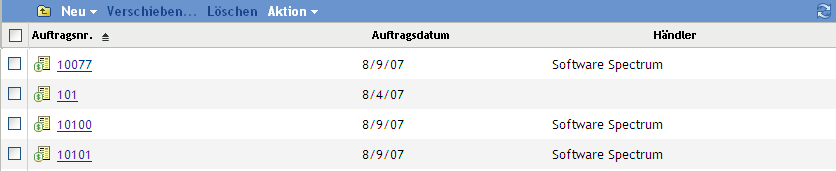 Klicken Sie in der Liste der Kaufdatensätze auf und anschließend auf , bzw. .
