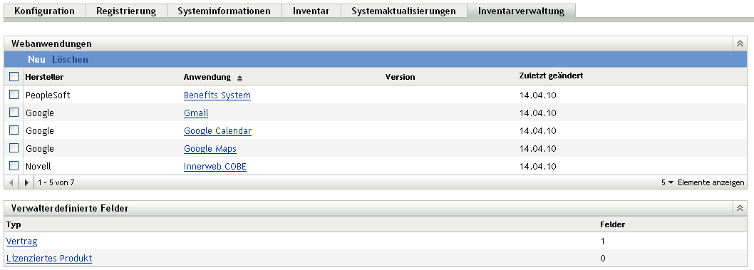 Klicken Sie im ZENworks-Kontrollzentrum auf und dann auf die Registerkarte .