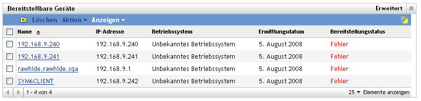 Geräte, die den Anforderungen des ZENworks Adaptive Agent entsprechen, werden im ZENworks-Kontrollzentrum im Bereich „Einrichtbare Geräte“ auf der Seite „Bereitstellung“ angezeigt.