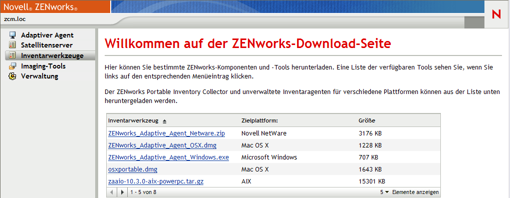 WICHTIG:Das Nur-Inventar-Modul verwendet den Standarport (80 oder 443) und nicht den auf dem ZENworks-Server konfigurierten benutzerdefinierten Port.