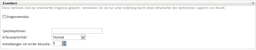 ACHTUNG:Diese Optionen dienen der erweiterten Diagnose. Verwenden Sie sie nur laut Anweisung eines Novell-Supportmitarbeiters.