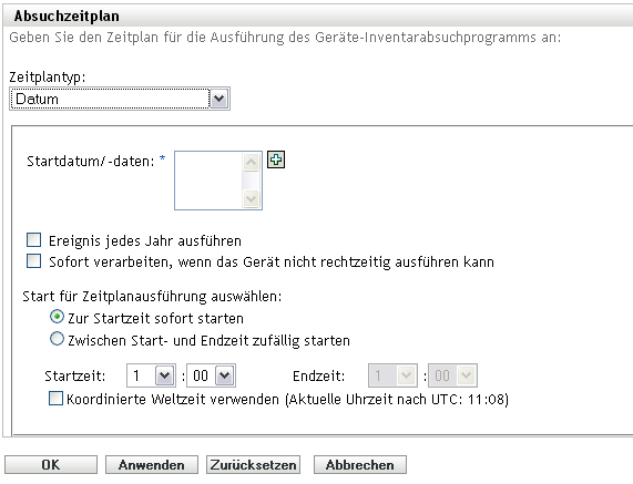Datum: Absuchen werden an den angegebenen Daten durchgeführt. Weitere Informationen hierzu finden Sie unter Datum.