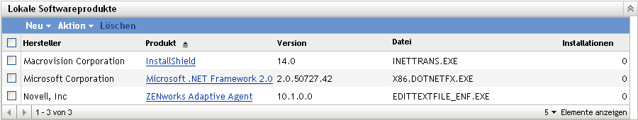 Wählen Sie im Bereich „Lokale Softwareprodukte“ entweder die Optionsfolge oder .