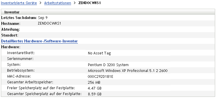 So zeigen Sie das Inventar eines nur inventarisierten Geräts an: