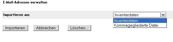 Wenn Sie die Option wählen, werden die bei einer Inventarabsuche gefundenen E-Mail-Adressen importiert.