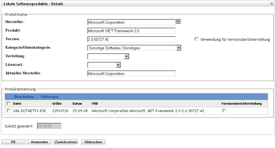 Im ZENworks-Kontrollzentrum können Sie sowohl Daten zur Produktbenennung als auch Daten zur Produkterkennung eines lokalen Softwareprodukts bearbeiten. Weitere Informationen finden Sie in den folgenden Abschnitten: