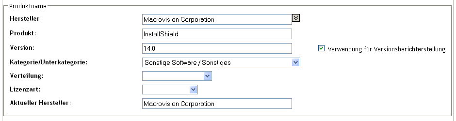 Product Name: Name des Produkts. Wenn diese Daten Teil der Erkennungskriterien sein sollen, wählen Sie .