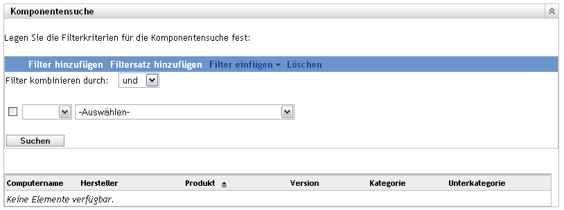 Im Bereich „Komponentensuche“ können Sie Filter und Filtersätze zur Suche nach einer bestimmten Komponente auswählen. Die jeweilige Komponente wird dann zusätzlich zu folgenden Informationen angezeigt: