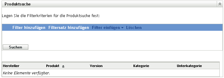 Bevor Sie Produktdaten anzeigen können, müssen Sie eine Produktsuche durchführen. Produktsuchvorgänge werden im Bereich „Produktsuche“ () durchgeführt.