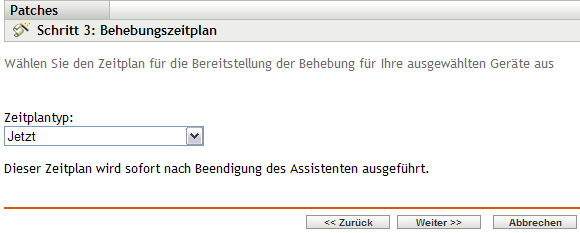 Abbildung 5-8 Seite „Behebungszeitplan“ für den Zeitplantyp „Jetzt“