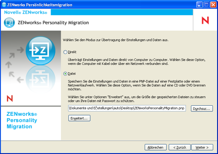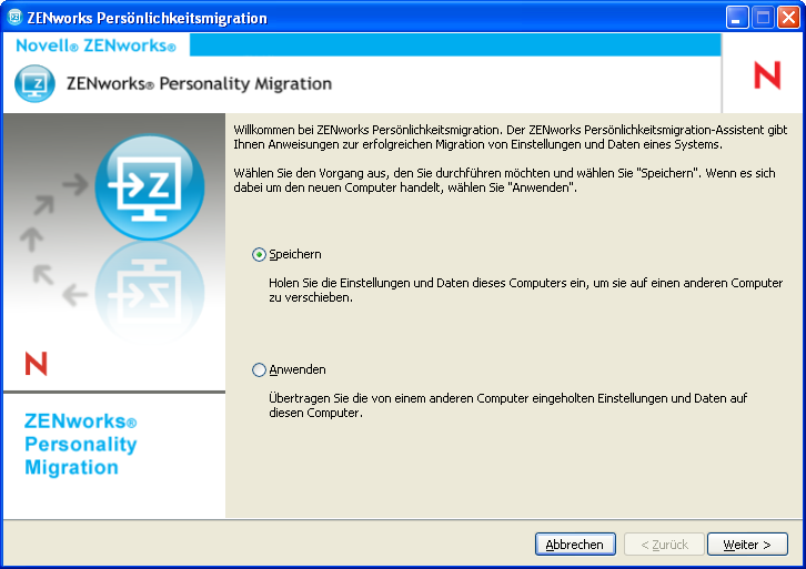 Doppelklicken Sie auf das ZENworks Personality Migration-Verknüpfungssymbol auf dem Desktop.