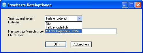 Klicken Sie auf , um das Dialogfeld mit den erweiterten Dateioptionen zu öffnen.