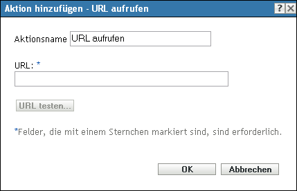Im Dialogfeld „Aktion - URL aufrufen“ können Sie den URL angeben, der auf dem Gerät aufgerufen werden soll.