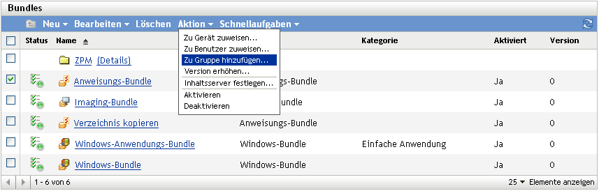 Aktivieren Sie in der Liste das Kontrollkästchen neben dem gewünschten Bundle (oder den Bundles).