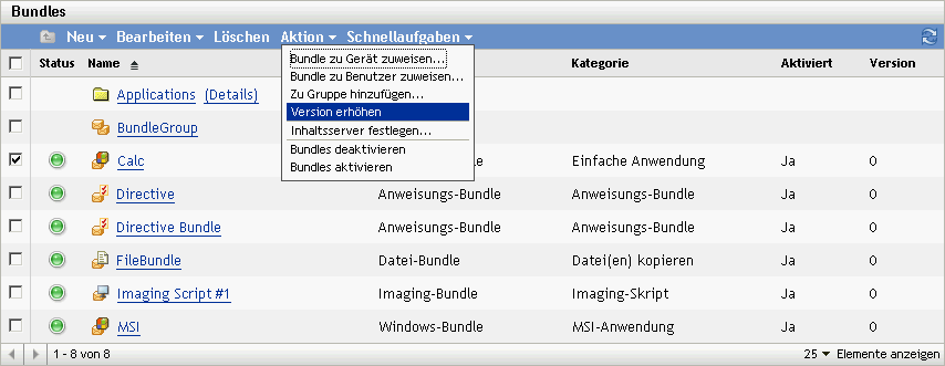 Aktivieren Sie in der Liste das Kontrollkästchen neben dem gewünschten Bundle (oder den Bundles).