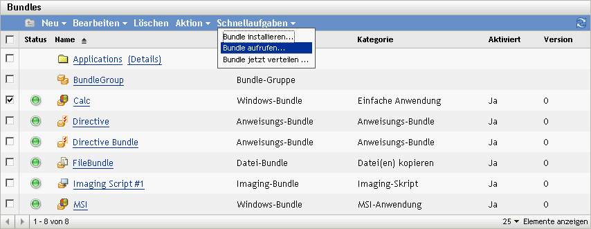 Aktivieren Sie in der Liste das Kontrollkästchen neben dem gewünschten Bundle (oder den Bundles).