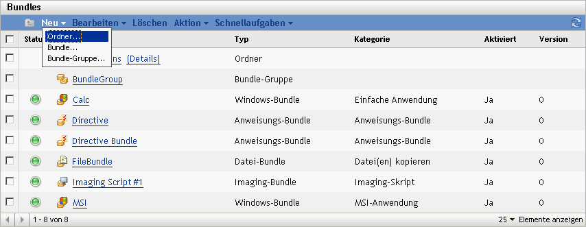 Wenn Sie ein Objekt im ZENworks-Kontrollzentrum benennen (Ordner, Bundles, Bundle-Gruppen, Kataloge usw.), stellen Sie sicher, dass die verwendeten Namen den Benennungskonventionen entsprechen, da nicht alle Zeichen unterstützt werden. Weitere Informationen zu Benennungskonventionen finden Sie im Abschnitt Benennungskonventionen im ZENworks-Kontrollzentrum