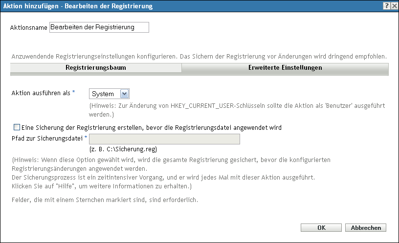 Abbildung E-28 Aktion - Dialogfeld „Registrierungsbearbeitung“: Seite „Erweiterte Einstellungen“
