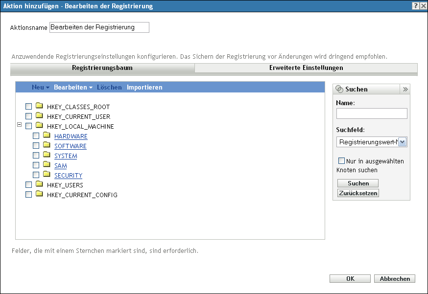 Abbildung E-27 Aktion - Dialogfeld „Registrierungsbearbeitung“: Seite „Registrierungsbaum“