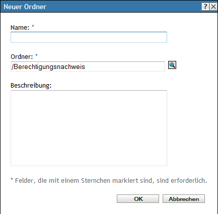 Der Name des Ordners darf nicht mit dem Namen von Ordnern oder Berechtigungsnachweisen identisch sein, die bei der Erstellung des Ordners bereits vorhanden sind.