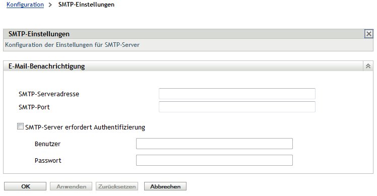 SMTP-Serveradresse: Geben Sie den DNS-Namen bzw. die IP-Adresse des SMTP-Servers an.