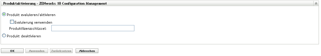 Klicken Sie in der Kontrollleiste „Produktlizenzierung“ auf das Produkt, das Sie evaluieren möchten.