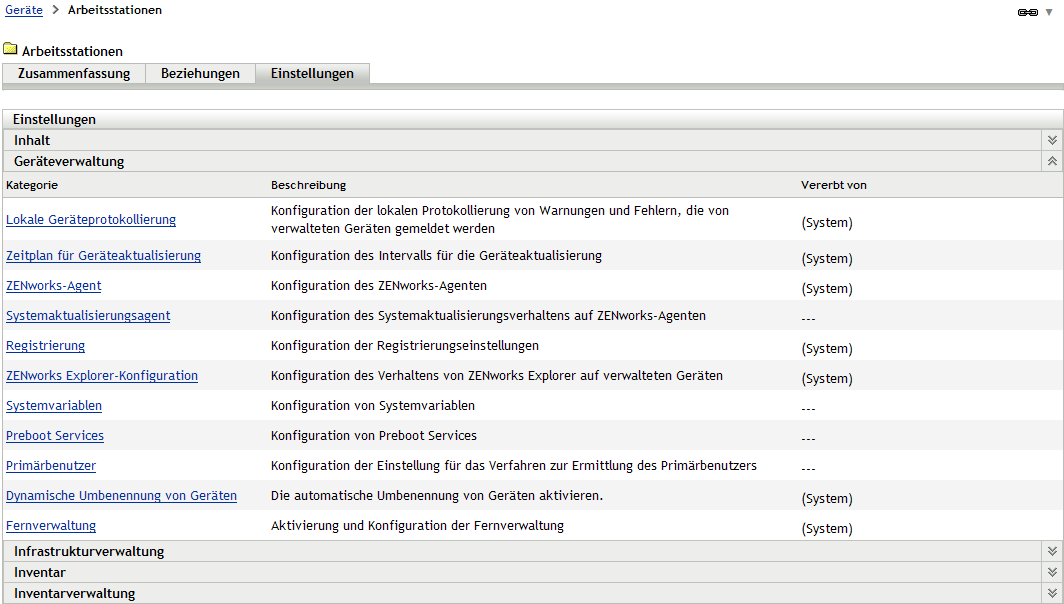 Weitere Informationen zu den Einstellungen erhalten Sie, wenn Sie im ZENworks-Kontrollzentrum auf die Schaltfläche klicken, bzw. in den folgenden Abschnitten: