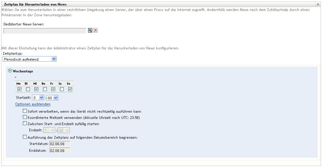Sie können den Zeitplan zum Herunterladen der News konfigurieren: