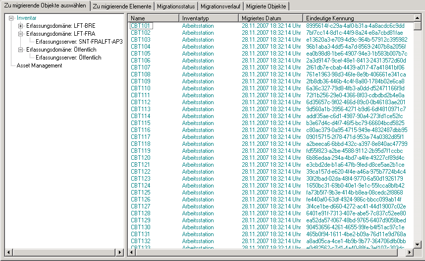 Nicht inventarisierte Arbeitsstationen werden nicht migriert. Wenn die Arbeitsstation außerdem einem Vertrag zugeordnet ist, wird auch die Beziehung zwischen Vertrag und Arbeitsstation nicht migriert.