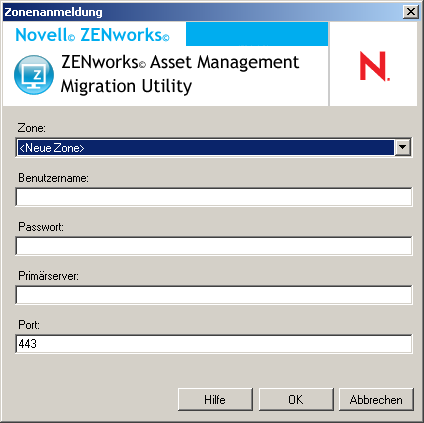So melden Sie sich bei der Verwaltungszone Ihrer Migrationsquelle für ZENworks 10 Asset Management an: