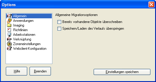 Abbildung B-1 Globale Migrationsoptionen