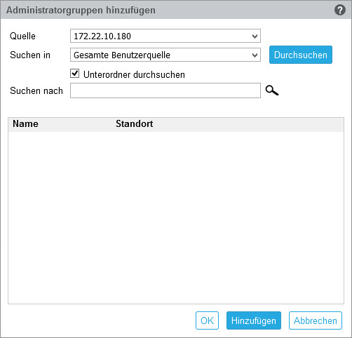 Für Active Directory: Benutzer in diesen Untergruppen haben keine Administratorrechte. Konfigurieren Sie diese Benutzer einzeln, um ihnen Administratorrechte zuzuweisen.