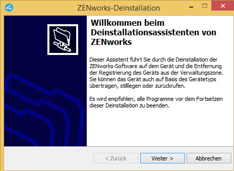 ZENworks-Installationsverzeichnis\novell\zenworks\bin\ZENworksUninstall.exe