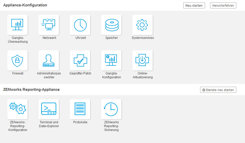 Sowohl die Appliance als auch ZENworks Reporting neu starten