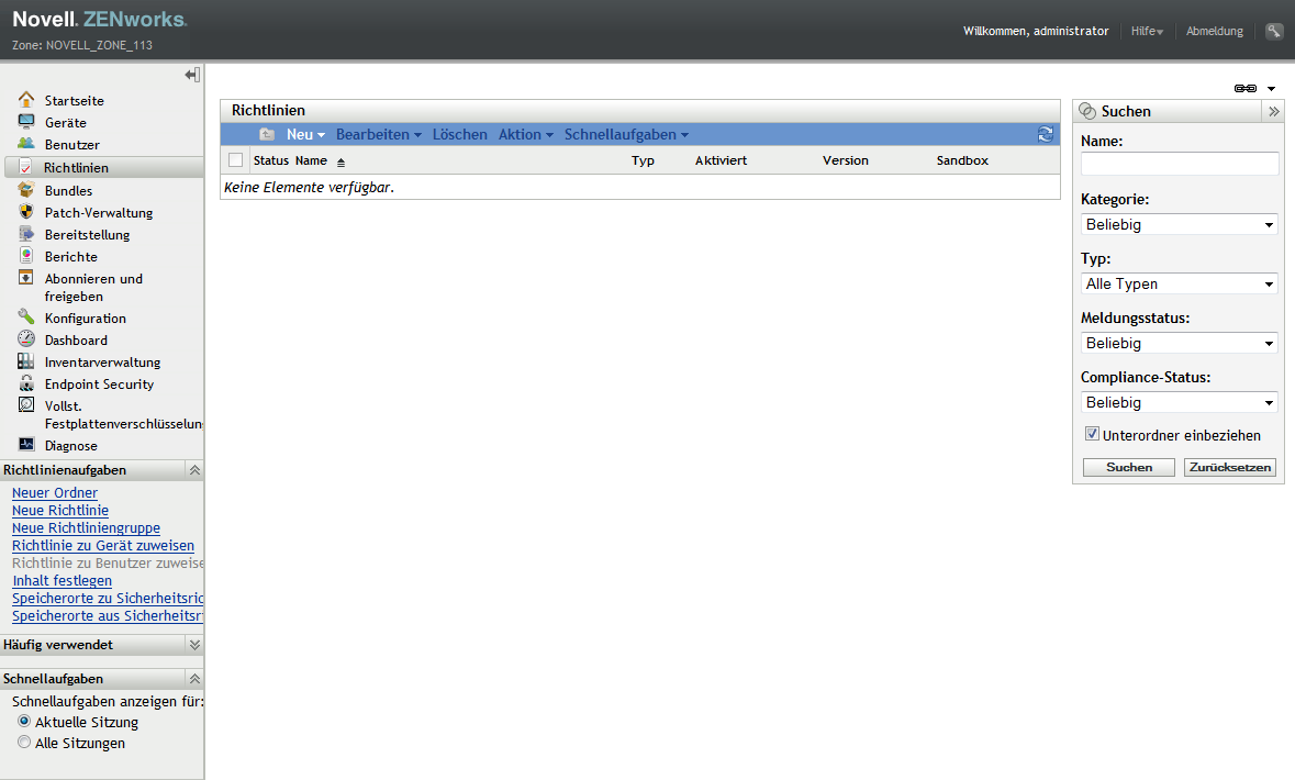 Klicken Sie im ZENworks-Kontrollzentrum auf , um die Seite „Richtlinien“ anzuzeigen.