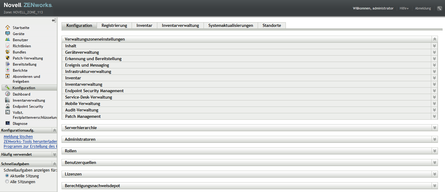 Klicken Sie im ZENworks-Kontrollzentrum auf , um die Seite „Konfiguration“ anzuzeigen.