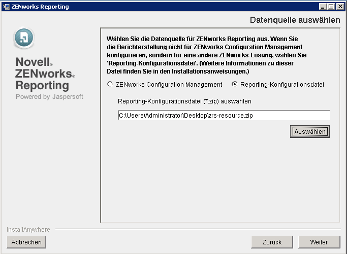 %ZRS_HOME% steht für den Installationspfad von ZENworks Reporting. Der Standardpfad lautet C:\Programme\Novell\zenworks-reporting\