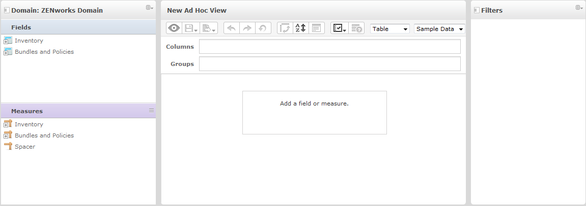 Mit den Werkzeugen im Bereich steuern Sie die Daten, die in eine Ansicht aufgenommen werden soll, sowie die Strukturierung dieser Daten.