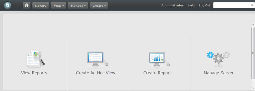 : Startet den Assistenten „Create Report“ (Berichterstellung), in dem Sie eine vorhandene Ad-hoc-Ansicht auswählen und einen Bericht erstellen.