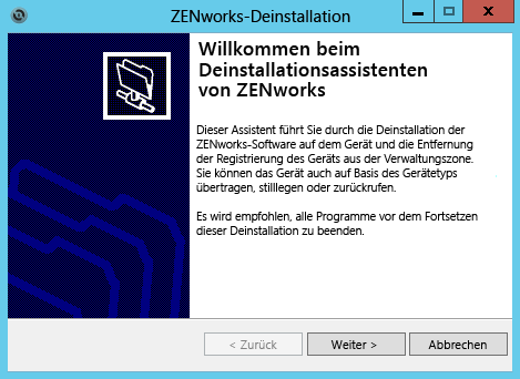 ZENworks-Installationsverzeichnis\novell\zenworks\bin\ZENworksUninstall.exe