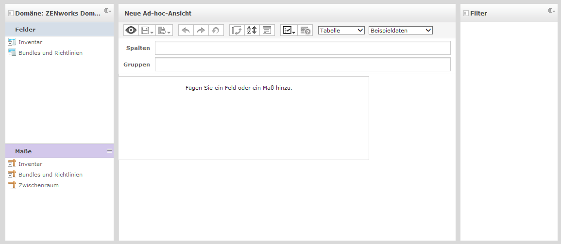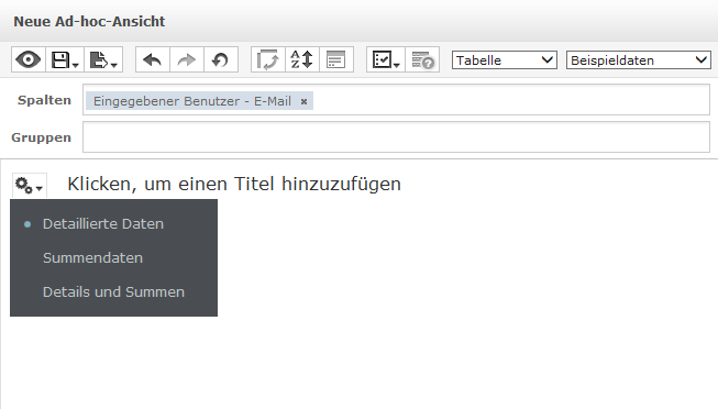 Mit den Werkzeugen im Bereich Ad-hoc-Ansicht steuern Sie die Daten, die in eine Ansicht aufgenommen werden soll, sowie die Strukturierung dieser Daten.