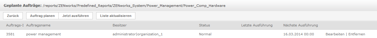 Informationen hierzu erhalten Sie unter Abschnitt 2.4.1, Planen und Ausführen von Berichten.