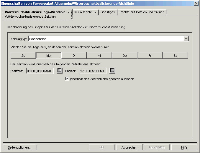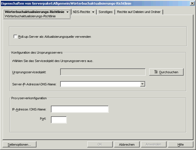 Das Wörterbuch sollte gelegentlich mit zusätzlichen, internen Software-Paket-Dateien aktualisiert werden. Anhand dieser Richtlinie können die Agenten der Arbeitsstation feststellen, an welchem Ort sich der Ursprung befindet und wie oft die einzelnen Wörterbuchdateien aktualisiert werden sollen.